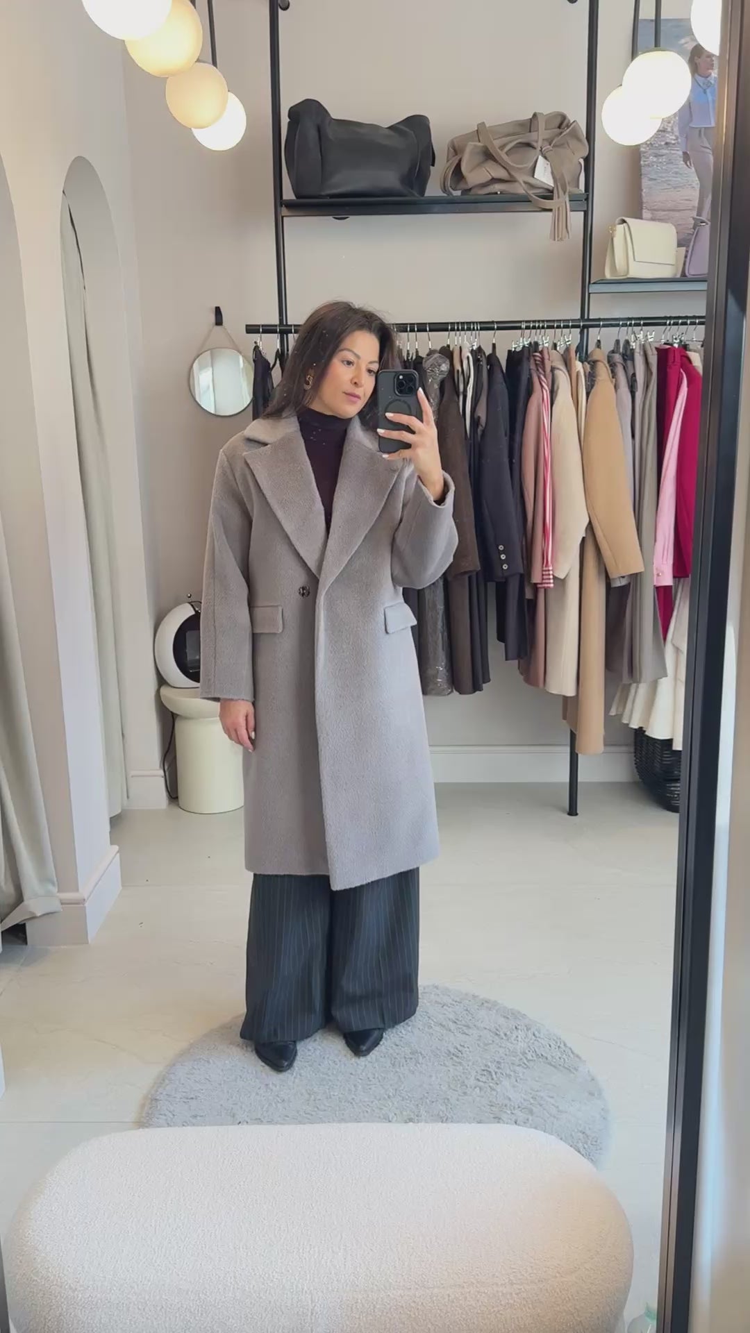 Płaszcz Blu Griggio to subtelna interpretacja zimowej elegancji w chłodnej, wysmakowanej tonacji. Jego nietuzinkowy odcień – stalowo-błękitna szarość – pięknie komponuje się z granatem, srebrem, chłodnym beżem i grafitem, tworząc szlachetne, stonowane stylizacje.